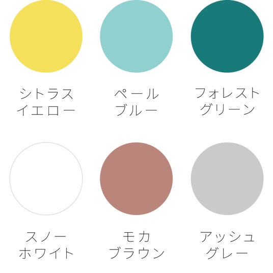 (シトラスイエロー/ペールブルー/フォレストグリーン/スノーホワイト/モカブラウン/アッシュグレー)