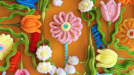 (1)オリジナルブーケを作ろう!いろとりどりのモールフラワーの中からお好きな2本を選び、オリジナルブーケを作る体験です。