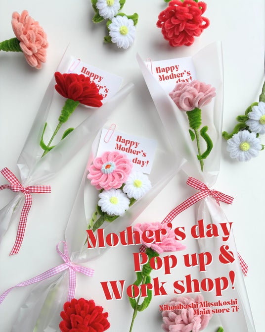 こうした反響を受け、今回は母の日シーズンに合わせ、お好きなお色のモールで「カーネーション」が作れる体験を用意します。