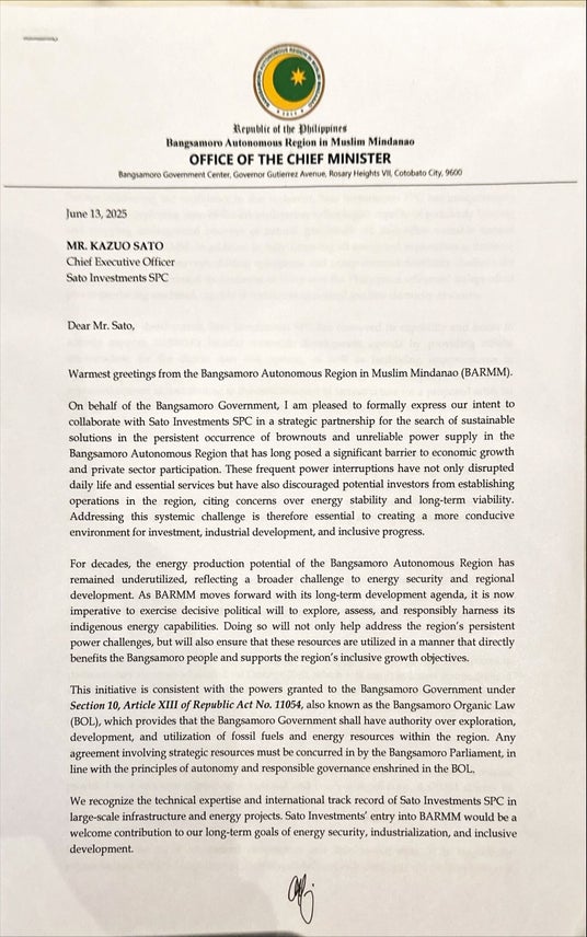 BARMM issued LOI to request for consulting services related to IPP, natural gas, and oil development