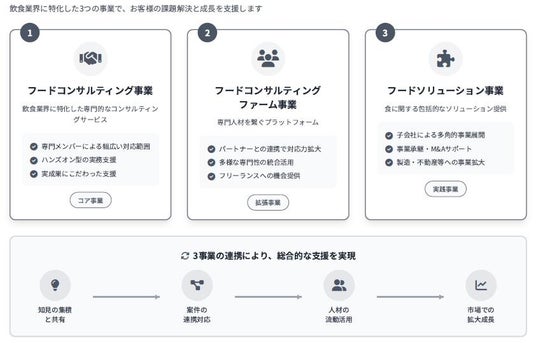 グローバルフードソリューション株式会社(本社:東京都港区、代表取締役社長:清水 貴之、以下GFS)は、2025年10月の設立以降、事業準備を進め、2026年1月より本格始動いたしました。現在は、コンサルティング・専門人材プラットフォーム・事業展開の3事業を軸に、飲食業界に特化した総合ソリューションを提供しています。