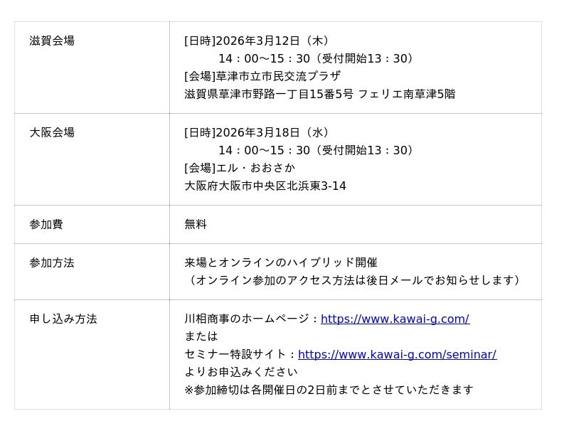 <セミナー詳細、申し込み:https://www.kawai-g.com/seminar/>