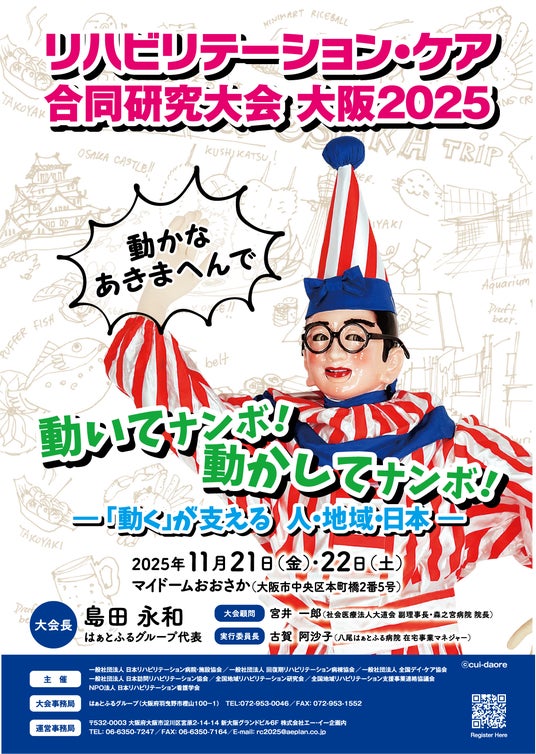 「動いてナンボ! 動かしてナンボ! -『動く』が支える 人・地域・日本-」をメインテーマに、全国の病院、介護施設、通所・訪問リハビリテーションなど、現場の最前線で活動する多職種2,000名が集結します。 認知症ケア、地域包括ケア、DX活用、災害リハ、人材育成など、約2日間にわたって、医療・介護の社会課題を解決し、人々の生活の質(QOL)向上に直結する最新の取り組みが、口述演題、ポスター演題、シンポジウムで発表されます 。