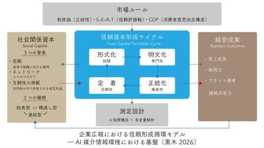 これは、これまで運やセンス、属人的な能力に委ねられがちだった信頼形成を、再現可能な経営サイクルへと変えていく考え方です。企業の中にある経験、技術、思想、日々の積み重ねを、顧客価値として構造化する。それを部門横断で一貫した情報として社会に届ける。その結果として、市場から「正統な実力者」として認識される状態をつくる。