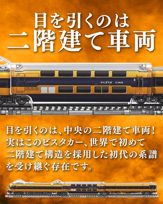 新感覚の鉄道模型「3Dアクデン」シリーズ11作品目になる当商品は、発売以来はじめて現存しない旧車両をモデル化。懐かしむ往年ファンのご要望で誕生した昭和を象徴する近鉄特急3両セット。