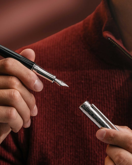 万年筆とボールペンで展開される「レマン ダミエ」スペシャルエディションは、控えめでありながら現代的なブラックラッカー仕上げのボディと、メゾンの職人技の証である格子模様をダイヤモンドカットで刻んだロジウムコーティングのキャップを組み合わせた逸品です。各筆記具は、再解釈されたダミエ柄をエンボス加工したレザーケースとシルバー調の内装を備えた特別なギフトセットで提供されます。単なる筆記具を超え、優雅に筆記の芸術を称える理想の贈り物としてデザインされています。