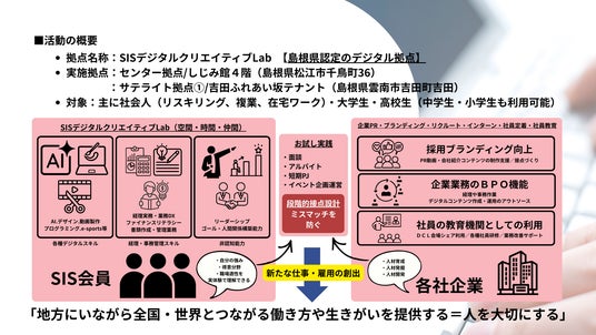 NPO法人SISアカデミーは、こうした構造的な課題に対し、人材育成・情報発信・実務・企業連携を一体で行う「SIS-DCL」を島根県内で立ち上げました。技術やスキルだけを教えるのではなく、人と企業が互いを理解し、納得して関われる状態をつくることを重視した「やさしいデジタル」人材育成・トレーニングの拠点です。