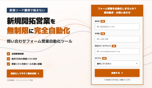 3日間の無料体験期間中、問い合わせフォーム営業自動化ツールを無制限でご利用いただけます。お持ちのリストに対して自由に送信が可能です。商談は不要で、Webからのお申し込みですぐにご利用を開始できます。