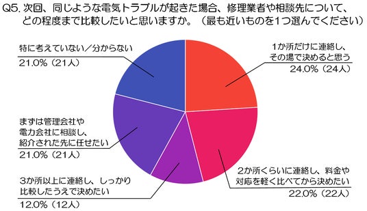 Q5. 次回、同じような電気トラブルが起きた場合、修理業者や相談先について、どの程度まで比較したいと思いますか。(最も近いものを1つ選んでください)