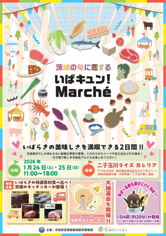 茨城県は、いばらきの選りすぐりの美味しさをお届けする『いばキュン!Marche』を、2026年1月24日(土)・25日(日)の2日間、二子玉川ライズ ガレリアで開催します。