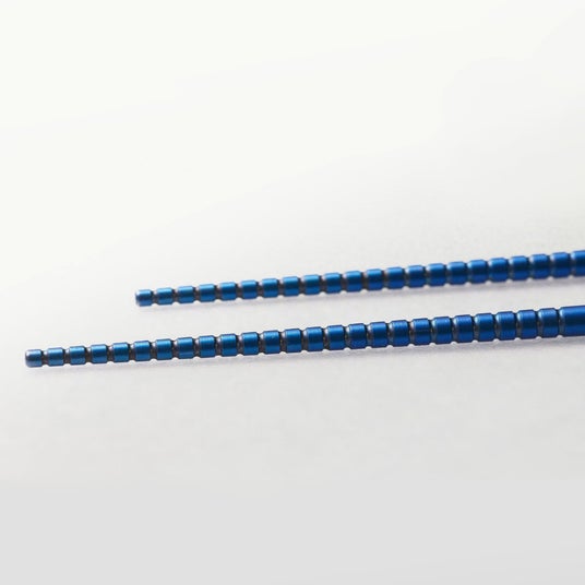 加工難度の高い64チタンは、福井県のチタン加工メーカーによる高精度な切削技術と職人の手仕事によって量産品質まで仕上げられた。塗装ではなく陽極酸化による自然発色の蒼色も特徴で、永く使える一膳として支持を集めている。