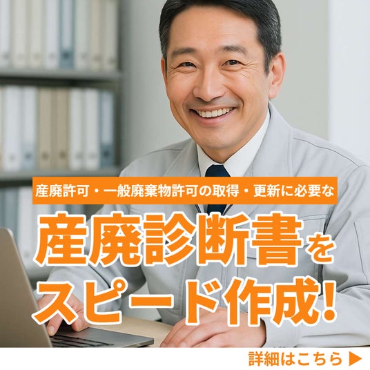 4月中に限り、行政書士様経由のお客様限定で産廃診断書の作成を税込み49800円に大幅値引き