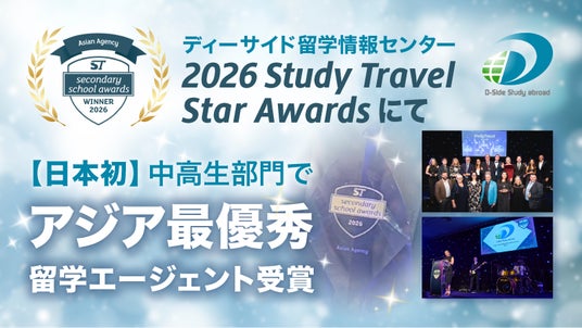ディーサイド留学情報センターを運営する株式会社アットワールド(本社:東京都新宿区、代表取締役社長:上田顕)は、教育分野の国際的専門メディアStudyTravel社(英)が主催する国際アワード「ST Secondary School Awards 2026」のアジアエージェント部門(Asian Agency)において、見事「大賞(Winner)」を受賞いたしました。