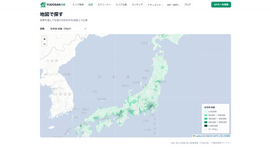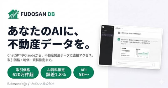 カボシア株式会社(本社: 東京都港区、代表: 小池陸)は、国土交通省が公開する不動産情報ライブラリ(reinfolib)を主としたデータを構造化し、REST APIとAIコネクタで提供するプラットフォーム「FUDOSAN DB」を2026年4月6日にβ公開しました。