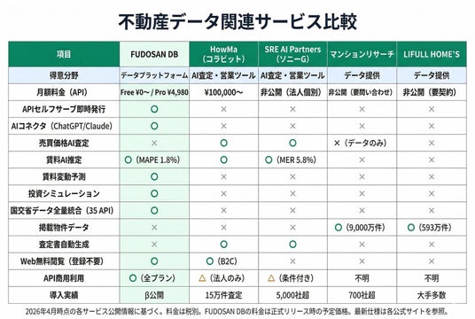 不動産データ関連サービス比較(2026年3月時点の各サービス公開情報に基づく)