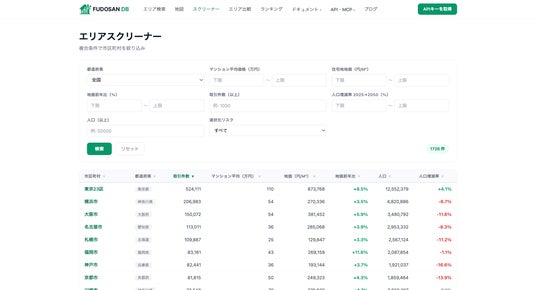 - ランキング(地価・取引量・マンション価格など5カテゴリ)