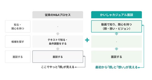 Visionalグループの株式会社M&Aサクシード(所在地:東京都渋谷区/代表取締役社長:金 蓮実)が運営する法人限定M&Aプラットフォーム「M&Aサクシード」( https://ma-succeed.jp/ )は、すべての経営者が経営者自身と会社のキャリアを考え、納得して会社の次の一手を選ぶための判断材料を提供する「かいしゃ経営者のミカタ室」の第2弾として、2026年4月23日(木)より、譲受企業の顔・想いを動画で事前に知り、関心を持った企業と直接対話できる『かいしゃカジュアル面談』を提供開始いたします。