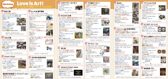 各ギャラリースケジュール、イベントスケジュール、ワークショップ、地図など