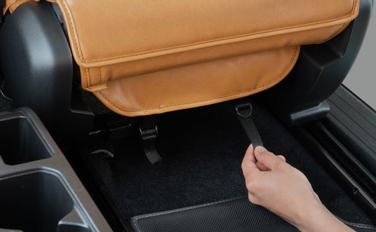 フロントシートカバーの運転席・助手席背面には収納に便利なバックポケットを装備。地図や雑誌、スマートフォンなどのちょっとした小物をすっきり収納でき、車内の整理整頓にも貢献します。
