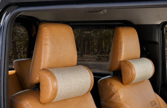 シートカバーと同時発売となるネックパッドは¥3,300/個(税込)。長距離ドライブ時の姿勢サポートや車中泊時の快適性向上に役立つアクセサリーです。フロントシートへの装着に対応し、単品での購入も可能。シートカバーとコーディネートすることで、より統一感のあるインテリアを演出できます(リアシートへの装着は不可)。