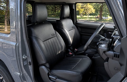 美しい縦ストライプデザインが特徴の「モントレー」。乗り込むたびに心躍る、クラシックなストライプ柄がジムニーのインテリアに凜とした存在感をプラスします。レザーの色に品よく馴染む絶妙な刺繍糸がアクセントとなり、シンプルながらも上質な印象を演出。ベージュ・ブラックの2カラー展開で、ジムニーのボディカラーやお好みの雰囲気に合わせてお選びいただけます。