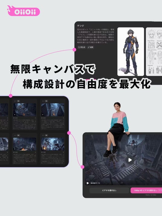 【2026年3月 東京発】次世代AI動画生成プラットフォーム「OiiOii」は、企画立案から動画生成、編集、成果物書き出しまでをAIで完結させる新機能群を、2026年3月より正式リリースしました。本プラットフォームは個人クリエイターから法人利用まで広く活用されており、今回の新機能により制作~納品までの一連業務をAIで高速化・自動化し、現場の工数負担を大幅に削減します。