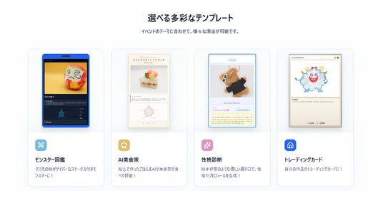 参加者ご自身のスマートフォンの標準ブラウザでQRコードを読み込み、作品を撮影するだけ。AIが画像の色・形・特徴を解析し、「強さ・属性・必殺技」などを自動生成して、世界に一つのオリジナルカードを作成します。(※生成された画像はスマホにダウンロード可能です)