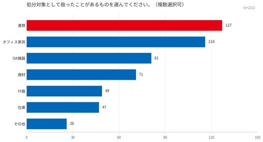 ■ 書類・オフィス家具が処分対象の上位 OA機器や廃材も4割近くが経験
