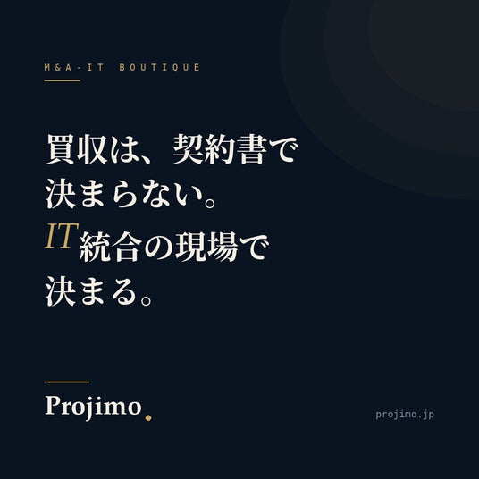 合同会社Projimo(本社:東京都板橋区、代表社員:西川 貴弘)は、2026年4月、事業方針を見直し、M&A後のIT統合(PMI:Post-Merger Integration)および大規模プロジェクトのPMO支援を中核とするコンサルティングブティックへと事業領域を絞ることを決定しました。