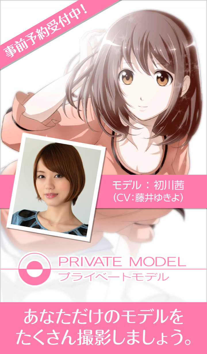 GTラボクリエイティブ(代表取締役社長:坂東勇気、本社:徳島県徳島市)は、スマートフォン向けゲームアプリ第1弾となる『プライベートモデル』の事前予約を2015年1月19日(月)より『予約トップ10』および『ゲームギフト~ハヤトク~』にて受付を開始いたしました。事前予約の予約特典として、本ゲーム内で使用できるガチャポイントを10,000Ptを進呈いたします。スペシャルガチャ(500円相当)1回分、ノーマルガチャ(300円相当)10回分のシリアルコードが付与されます。