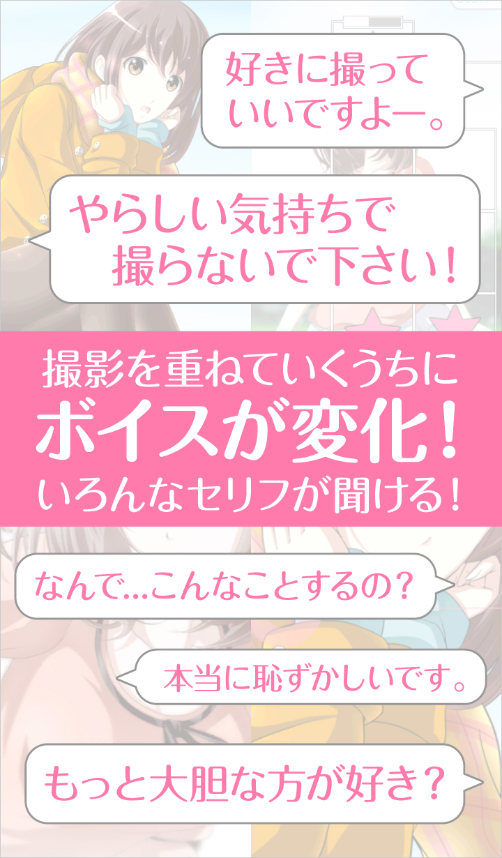 また、たくさん撮影することによりモデル(女の子)の表情や感情が変化し、ボイスパターンも変化していきます(モデル初川茜 / CV:藤井ゆきよ)。