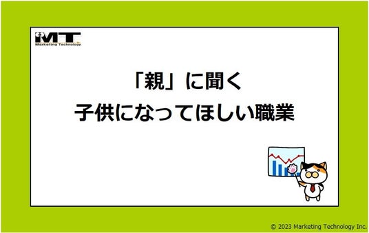 マーケティングテクノロジー株式会社(本社:東京都渋谷区、代表取締役:藤井 美紀、以下「MT」)は、「「親」に聞く子供になってほしい職業に関する調査」をインターネットで実施いたしました。