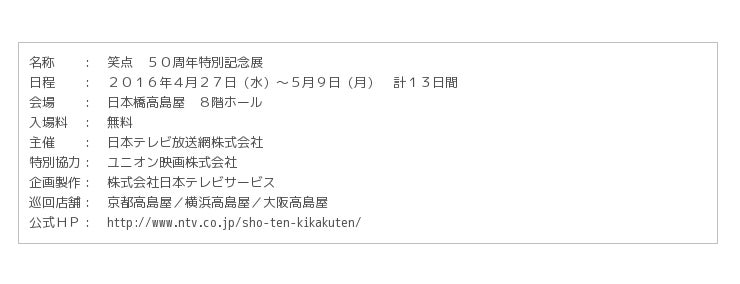 「笑点 放送50周年特別記念展」を入場無料で開催いたします。