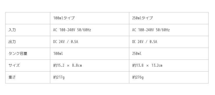 クールで香りの良いミストで寝室や仕事場を落ち着きのある空間にできます。「連続モード」(常にon)と、「断続モード」(30秒ごとにon/offを繰り返す/100mlタイプのみ)または「タイマーモード」(60分、120分、180分後に自動停止/250mlタイプのみ)を選択可能です。