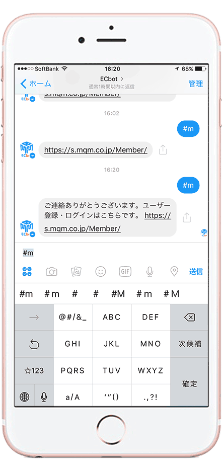 Step2: #m を送信、ユーザー登録を行う