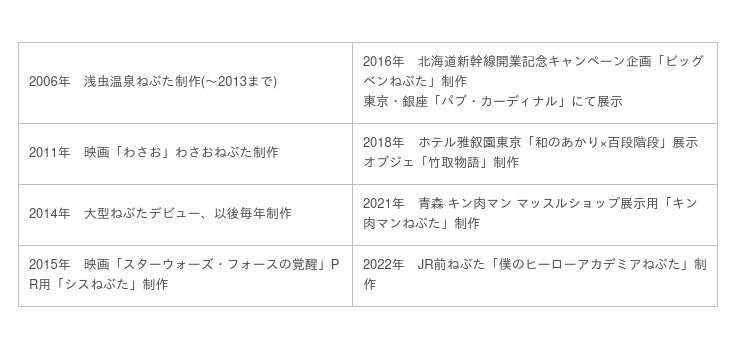 1989年に初の大型ねぶたを制作して以来、ねぶた大賞や第30回NHK東北放送文化賞など多数の受賞実績を持つ。東京ドームをはじめブダペスト、ロサンゼルスなど国内外で出陣ねぶたを制作。
