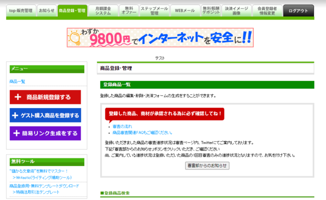 ●登録方法:インフォトップ販売者登録後、販売者マイページ内の商品登録『簡易リンク生成をする』より登録