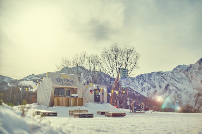 多くのスキーヤー・スノーボーダーが集うゲレンデの中腹、標高1,450mに位置するこの「CORONA ESCAPE BAR」では開放感溢れるロケーションで絶景を堪能しながらコロナビールをお楽しみいただけます。