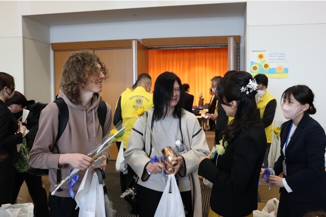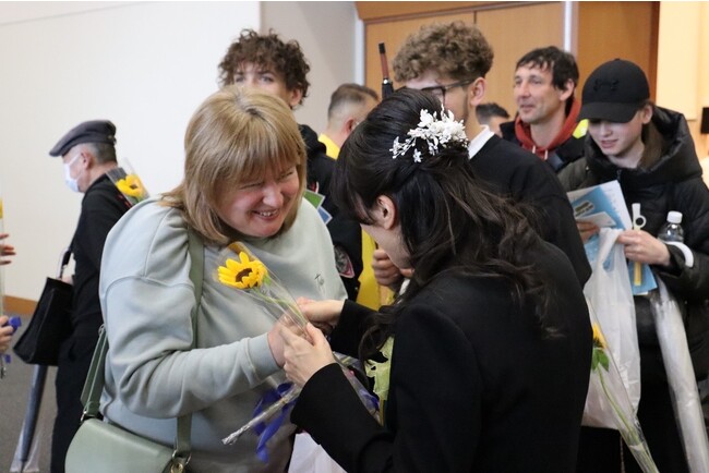 法政大学応援団からのエールで、本イベントは閉会したが、最後の閉会の挨拶で奈月れいが再び登壇、ウクライナ避難民の方々の暮らしが少しでも心穏やかに安らげるように、日本人として引き続きサポートできるよう、自分達が今後も努力をしていく、活動を続けていくという言葉が参加した避難民の方に向けて送られ、本人から避難民の方へひまわりがプレゼントとして贈られた。