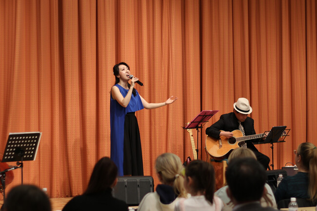 第二部では奈月れい、チェリストの茂木新緑、ギタリストの河野彰の3名によるミニコンサートを開催。ウクライナの第二の国家とも呼ばれる愛国歌「紅いカリーナは草原に」をウクライナ語で披露。さらに今回のイベントのテーマにもなった自身の楽曲「明日へ」、文部省唱歌の「故郷(ふるさと)」を歌い上げ、参加したウクライナ避難民の方へ歌でエールを送った。