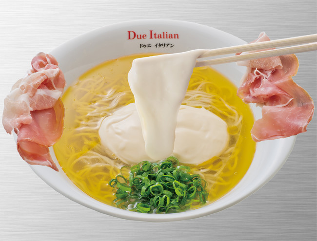 東京市ヶ谷に本店がある女性からの支持率No.1と言われている人気らぁ麺店「黄金の塩らぁ麺 ドゥエイタリアン」の新店。シェフ石塚が生み出す“らぁ麺”は鶏ガラを主に昆布やホタテの旨味をたっぷりと効かせた絶妙な“コクとキレ”を追求したこだわりの黄金スープが特徴。世界四大美食賞の一つである「 A.A. TASTE AWARDS」に唯一ラーメンとして4年連続で選出された、丼一杯のフルコースをコンセプトにした“らぁ麺生ハムフロマージュ”は特製とろ~り濃厚チーズを麺に絡めて食べる“新しいらぁ麺のかたち”を提供する。