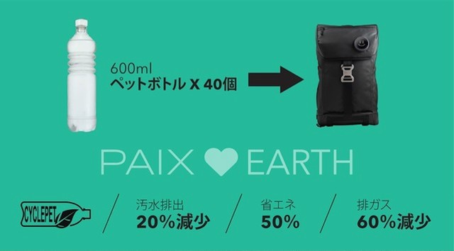 同一容量(30L)の一般的なバックパックと比べて、汚水排出を20%、排ガスを60%減少し、環境に対して50%のエネルギーを節約しています。