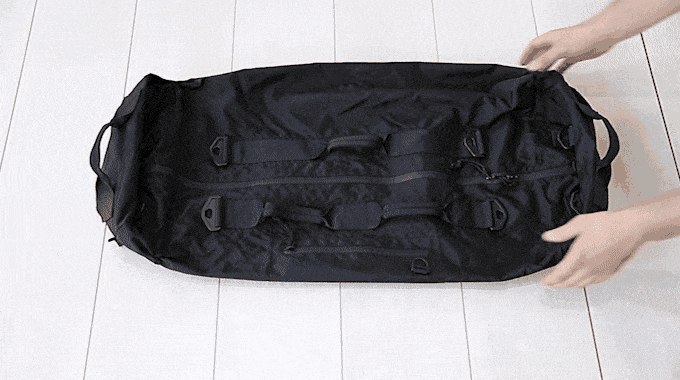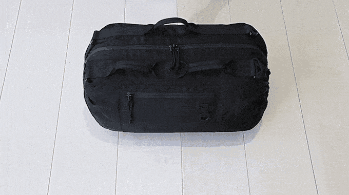 旅行先の目的地に到着すると、アジャスタブルバッグはデイバッグ用に小さく変形。
