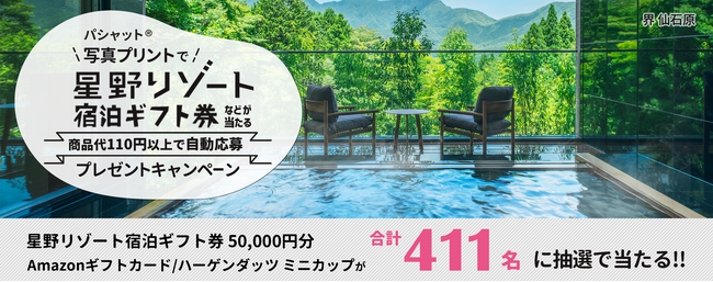 株式会社福多デジタルフォト(本社:福岡県福岡市博多区/代表取締役 佐野 貞昭)は、2023年2月時点で総利用者数400万人を超える AI証明写真アプリ「パシャット」において、スマホで撮影した写真を注文からお届けまで一貫して行える、写真プリントサービスをリリースいたしました。また、これを記念し星野リゾート宿泊ギフト券を含む豪華賞品が抽選で当たるプレゼントキャンペーンを2023年6月14日(水)~7月13日(木)までの期間で開催いたします。