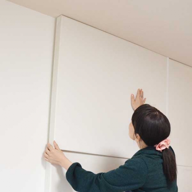 ↑既存の壁に設置するだけで防音対策が出来る、「ワンタッチ防音壁」。