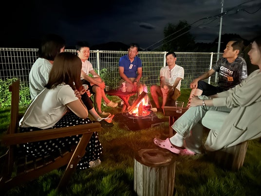 夜は焚き火を囲んで