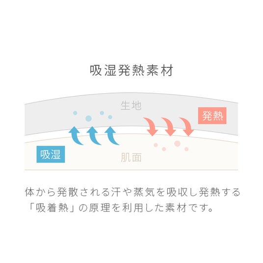 吸湿発熱素材と呼ばれる、体から発生する水分を基に発熱する特殊素材を採用。