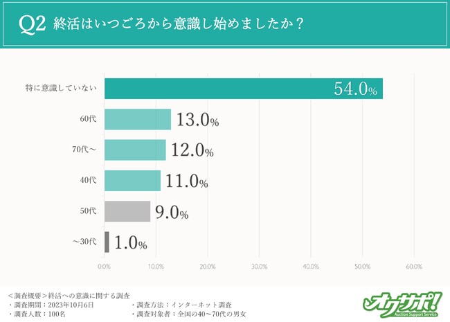 そこで、終活をいつごろから意識し始めたのか伺ったところ、半数以上の方は「特に意識していない」と回答しました。