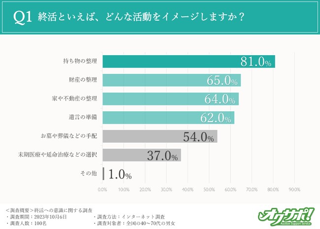 はじめに、終活のイメージについて伺ったところ、約8割の方が「持ち物の整理(81%)」と回答しました。