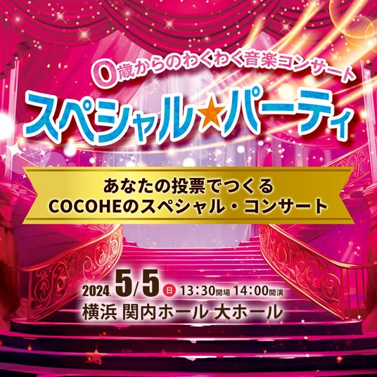 株式会社ライズサーチ(本社:横浜市港南区 代表取締役 内田奈津子)が運営するパフォーマンスグループCOCOHEは、2024年5月5日(日) 関内ホール大ホールにてCOCOHE 5周年記念 0歳からのわくわく音楽コンサート「スペシャル★パーティ」を開催します。